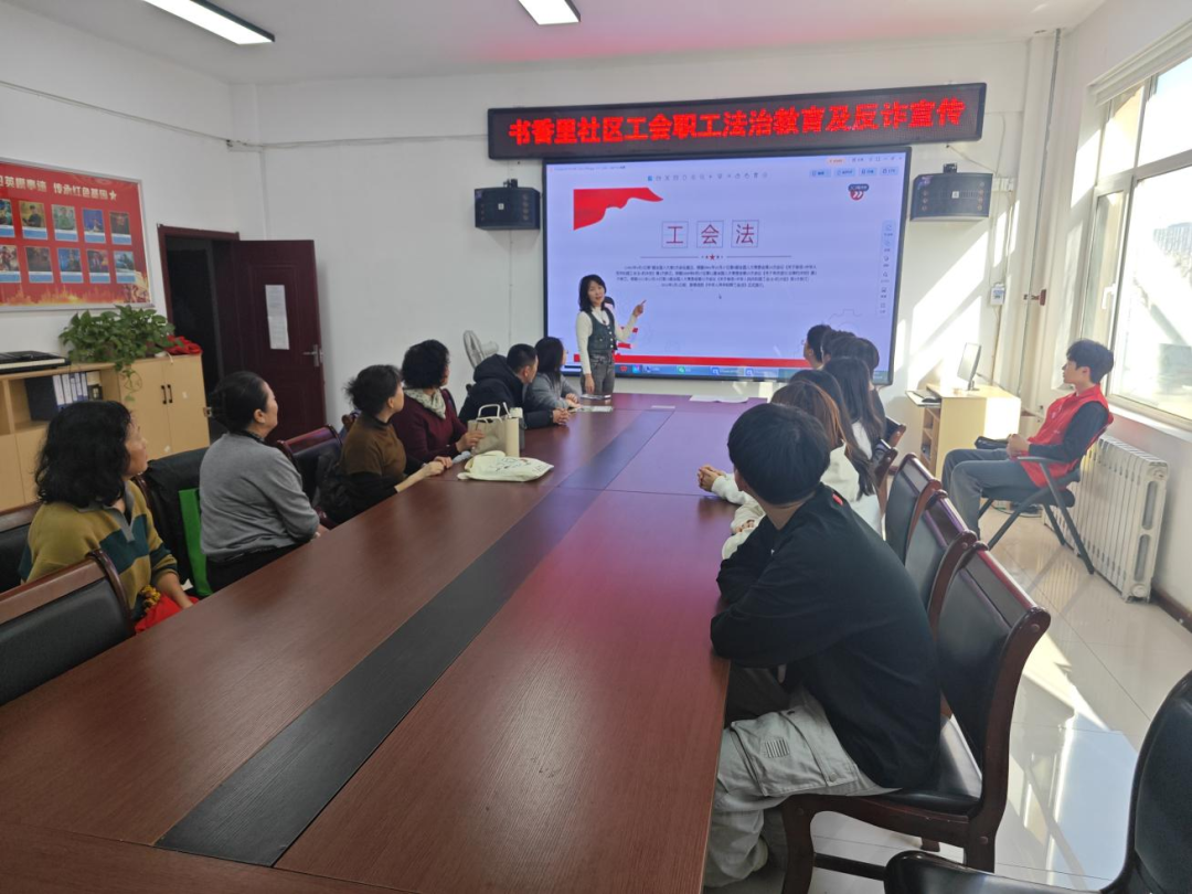 为提升基层工会服务效能,书香里社区工会组建志愿服务队伍,围绕法治宣传,为职工群众办实事、解难题等方面开展活动。志愿者们通过发放手册、现场答疑等形式,向职工讲解“刷单诈骗”“网贷诈骗”等常见骗局的防范要点;同时,围绕《中华人民共和国工会法》中职工维权、福利待遇、劳动保障等核心内容,用案例解读法律条文,引导职工学会运用法律武器维护自身合法权益。