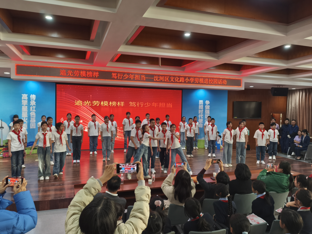 当劳模的故事被孩子们清澈的童声朗读,当屏幕上九旬劳模慈祥而坚定的嘱托响起,当情景剧里铸造第一枚金属国徽的锤音仿佛在耳畔回荡……一堂别开生面的思政教育课在文化路小学教育集团温情上演。11月19日,沈阳劳动模范纪念馆的“劳模精神流动宣讲”首次走进小学校园,为孩子们带来了一场触及心灵的精神洗礼。