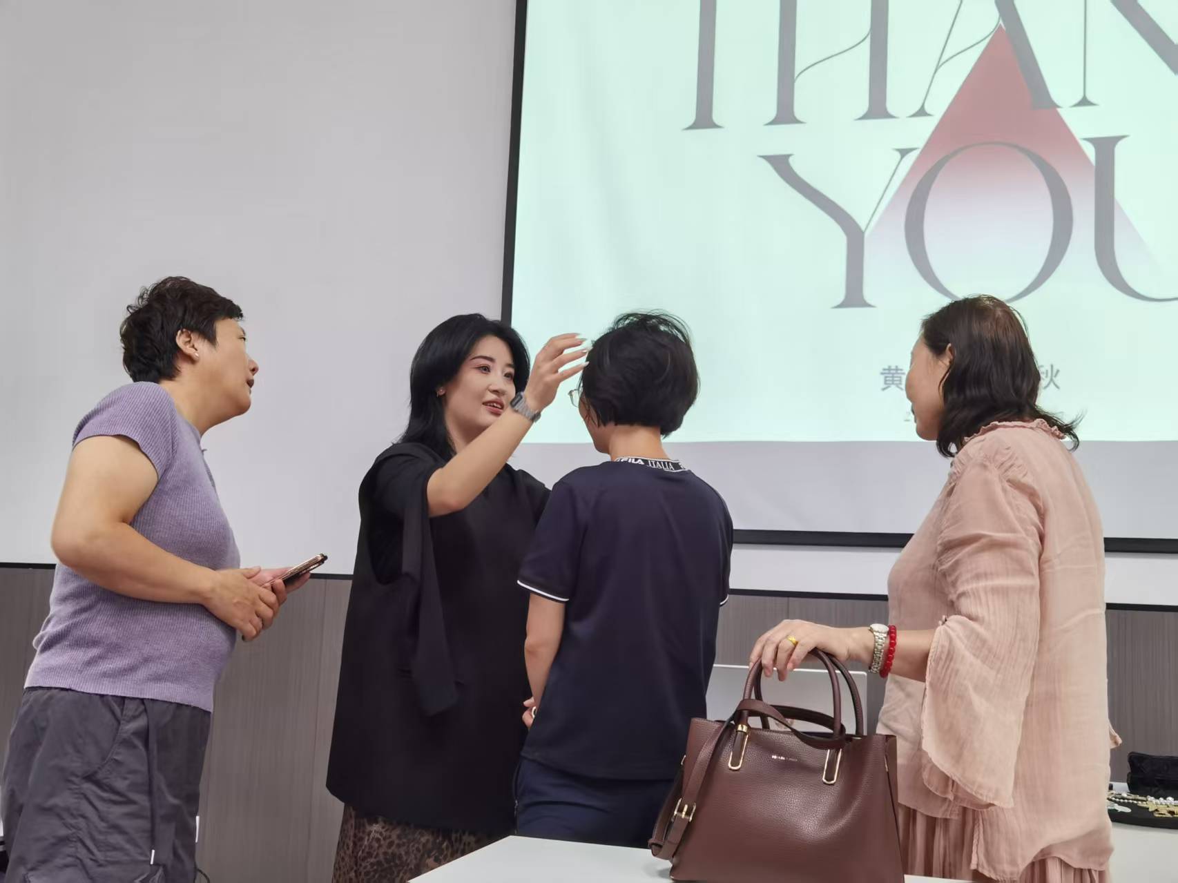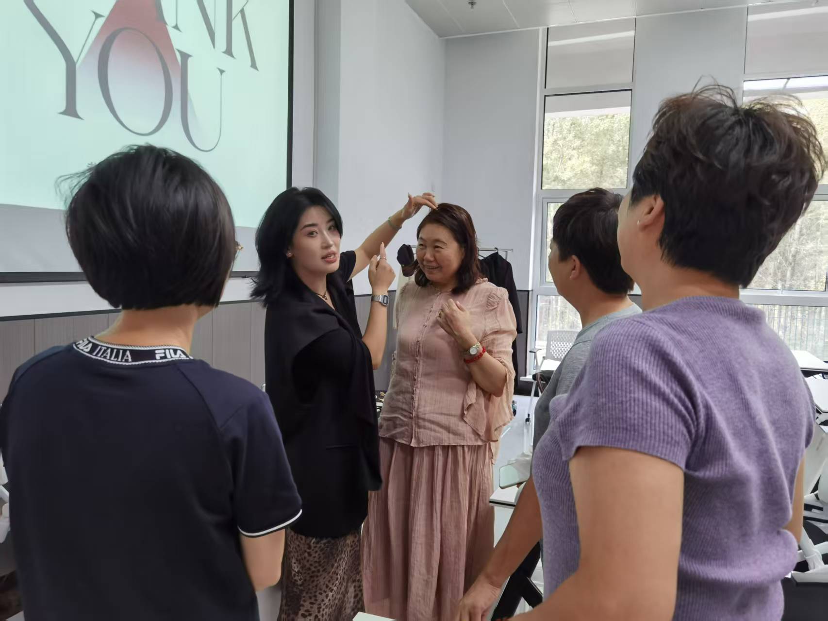 课上,老师围绕“如何用穿搭藏住身形短板”展开,结合常见身形特点,从服饰版型选择、色彩搭配技巧,到配饰点缀窍门,通过生动案例和现场示范,手把手教大家避开穿搭“雷区”。无论是腰腹赘肉、腿型不够完美,还是肩宽肩窄等问题,都能找到对应的解决思路,让穿搭既得体又显气质。