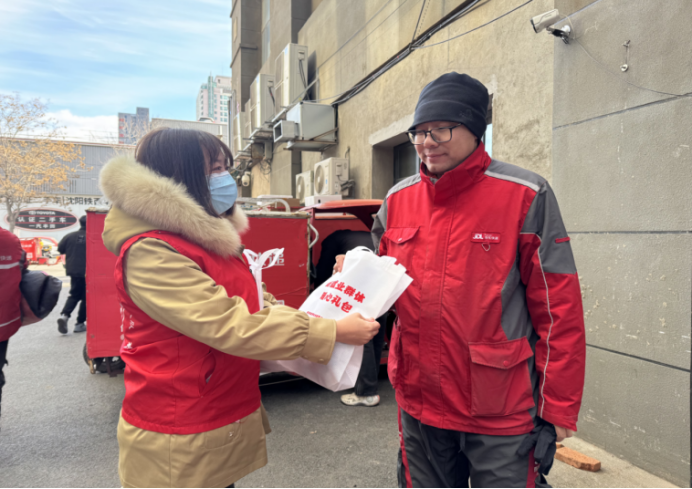 青年居易社区联合工会委员会主席李晓曼表示:“这些穿梭在刺骨寒风中的快递小哥,作为新就业群体的代表,为城市的便捷生活贡献着不可或缺的力量,希望通过我们的活动,让关心和关爱真正走进他们的心坎里,使新就业群体在城市中真切感受到党组织的温暖与城市的温度。”