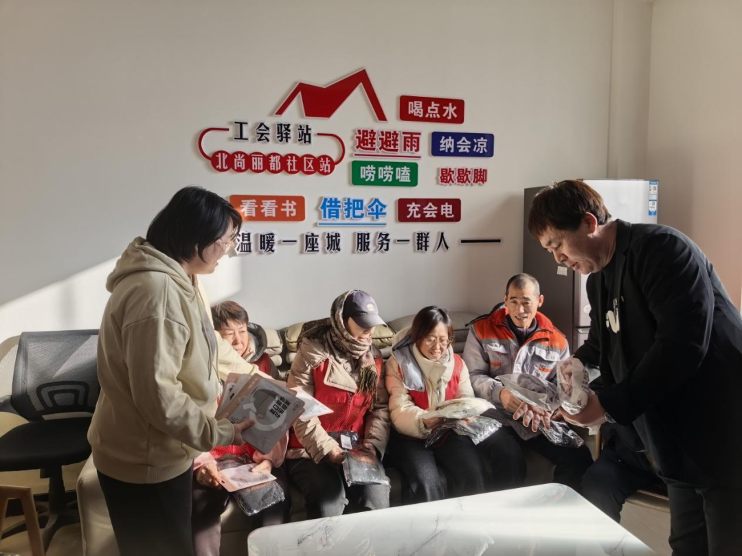 社区工会精心准备了保暖帽子和加绒手套组成的“暖冬礼包”,并叮嘱大家注意出行安全,这些装备成为劳动者抵御寒风的“温暖铠甲”。工会驿站变身冬日“避风港”,全天免费供应热水,让劳动者在休息间隙或手脚发僵时能喝上一杯暖身热水。社区工会通过点滴行动,让新业态劳动者在冬日奔波中感受到实实在在的温暖与尊重。