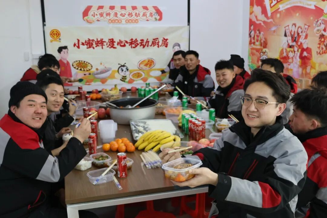 网点内饭菜飘香,笑声阵阵,驱散了冬日的寒意。