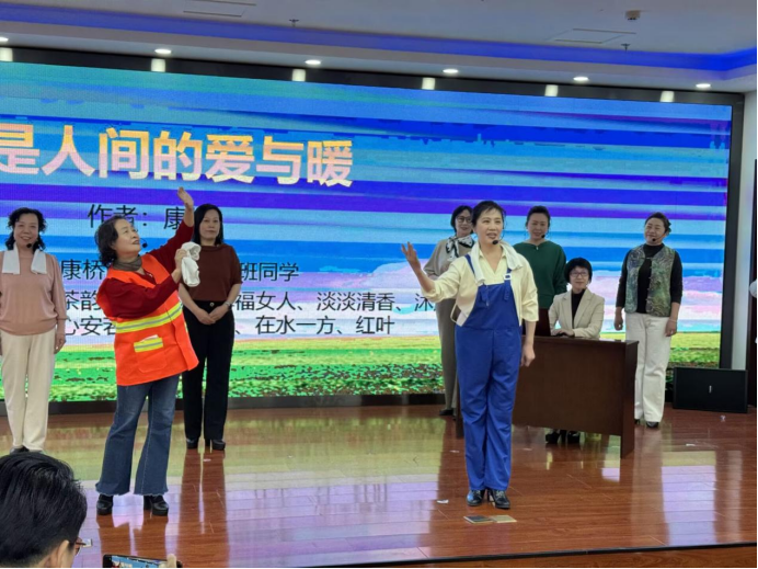 在温馨的氛围中,区总工会向全区女职工代表致辞肯定女职工的贡献,寄语大家从文字中汲取力量。活动以四个篇章有序推进:“疗愈于声·琴韵静心”环节,古琴伴奏下的散文诵读营造出静谧疗愈空间;“励志于行·逐光而上”环节,专业老师分享职场阅读技巧,并以《生命依序绽放》记忆挑战点燃现场热情;“巾帼聚力·绽放芳华”中,激昂的主题诵读传递坚韧精神,《你是人间的爱与暖》以专业水准赢得阵阵掌声;“感恩于心·孝亲传情”篇章里,感恩篇目及《一荤一素》的演绎,将现场温情推向高潮。
