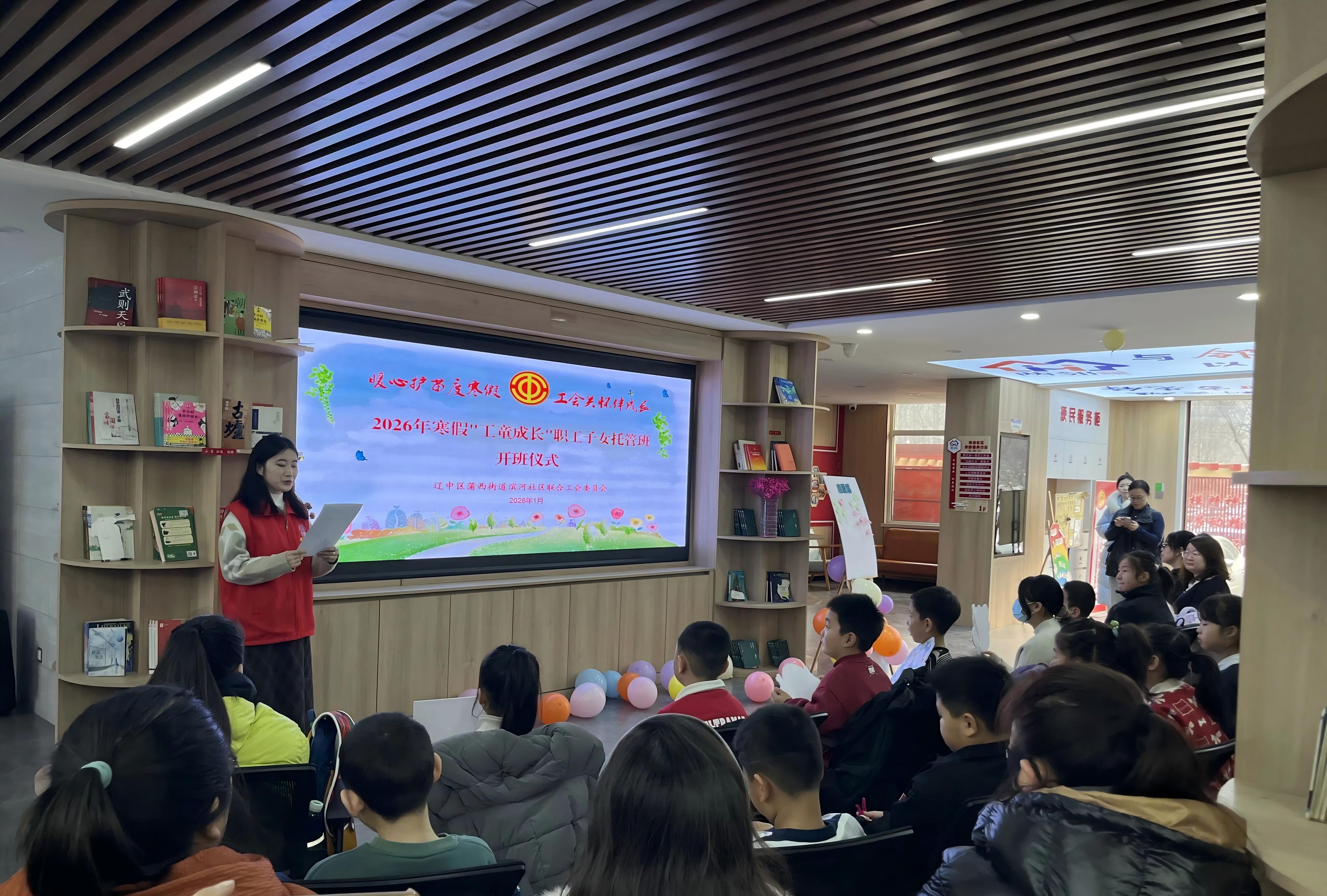 1月15日,辽中区蒲西街道滨河社区联合工会2026年寒假“工童成长”职工子女托管班在社区活动中心开班,30余名小学1—6年级职工子女开启为期20天的寒假生活。托管班实行“双签到”考勤、线上实时反馈与全程视频监控,配备看护教师与大学生志愿者,课程涵盖学业辅导、素质拓展与安全守护,并融入马年民俗手工、非遗体验、红色故事宣讲等特色内容,兼具知识性与趣味性。
