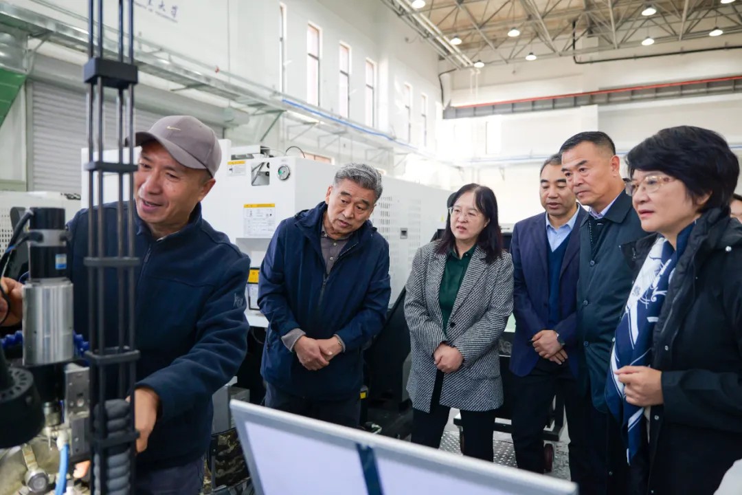 在沈阳工业大学,调研组一行实地走访了马克思主义学院“四个自信”虚拟实践教学中心、智能制造实训基地以及物理实验中心。在“四个自信”虚拟实践教学中心,调研组详细了解了中心利用现代信息技术,通过沉浸式、交互式体验开展理论宣传和思想教育的创新模式,对其在坚定教职工与青年学生理想信念方面取得的成效表示肯定。在智能制造实训基地和物理实验中心,调研组重点考察了实践教学平台在弘扬科学精神、工匠精神,提升教职工及未来产业工人专业技能与综合素养方面所发挥的积极作用,并就如何将这些优质教学资源面向广大企业职工开放共享、服务区域产业工人队伍建设进行了探讨。