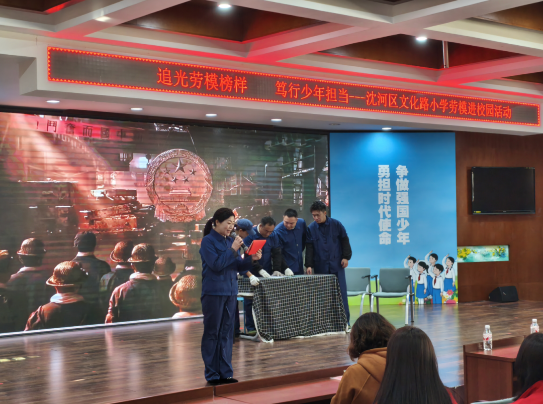 当劳模的故事被孩子们清澈的童声朗读,当屏幕上九旬劳模慈祥而坚定的嘱托响起,当情景剧里铸造第一枚金属国徽的锤音仿佛在耳畔回荡……一堂别开生面的思政教育课在文化路小学教育集团温情上演。11月19日,沈阳劳动模范纪念馆的“劳模精神流动宣讲”首次走进小学校园,为孩子们带来了一场触及心灵的精神洗礼。