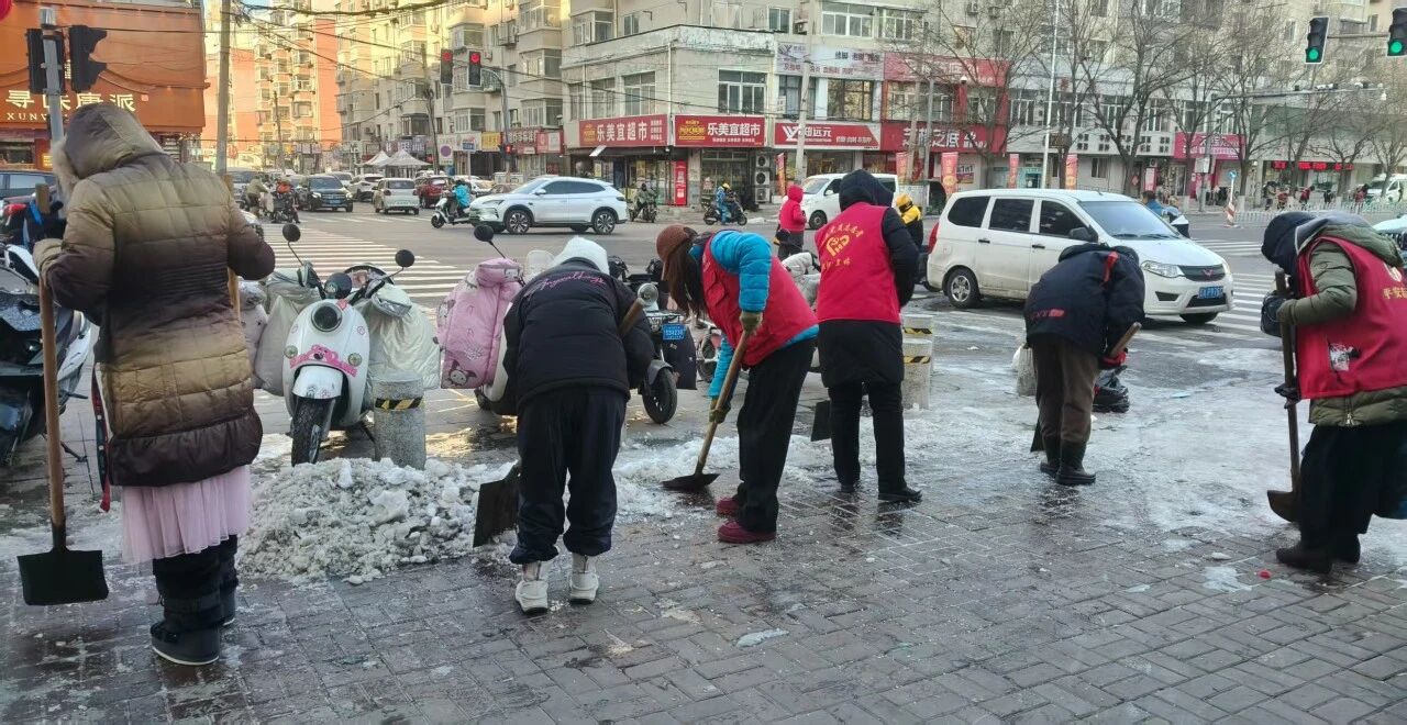 在明廉街道华凯社区,工会联合社工与志愿者开展除冰清障服务。志愿者们不畏严寒,活跃在地铁9号线皇姑屯站周边,奋力清理出入口及人行道上的积雪残冰,及时为市民开辟出安全、通畅的出行通道,赢得过往群众的一致好评。