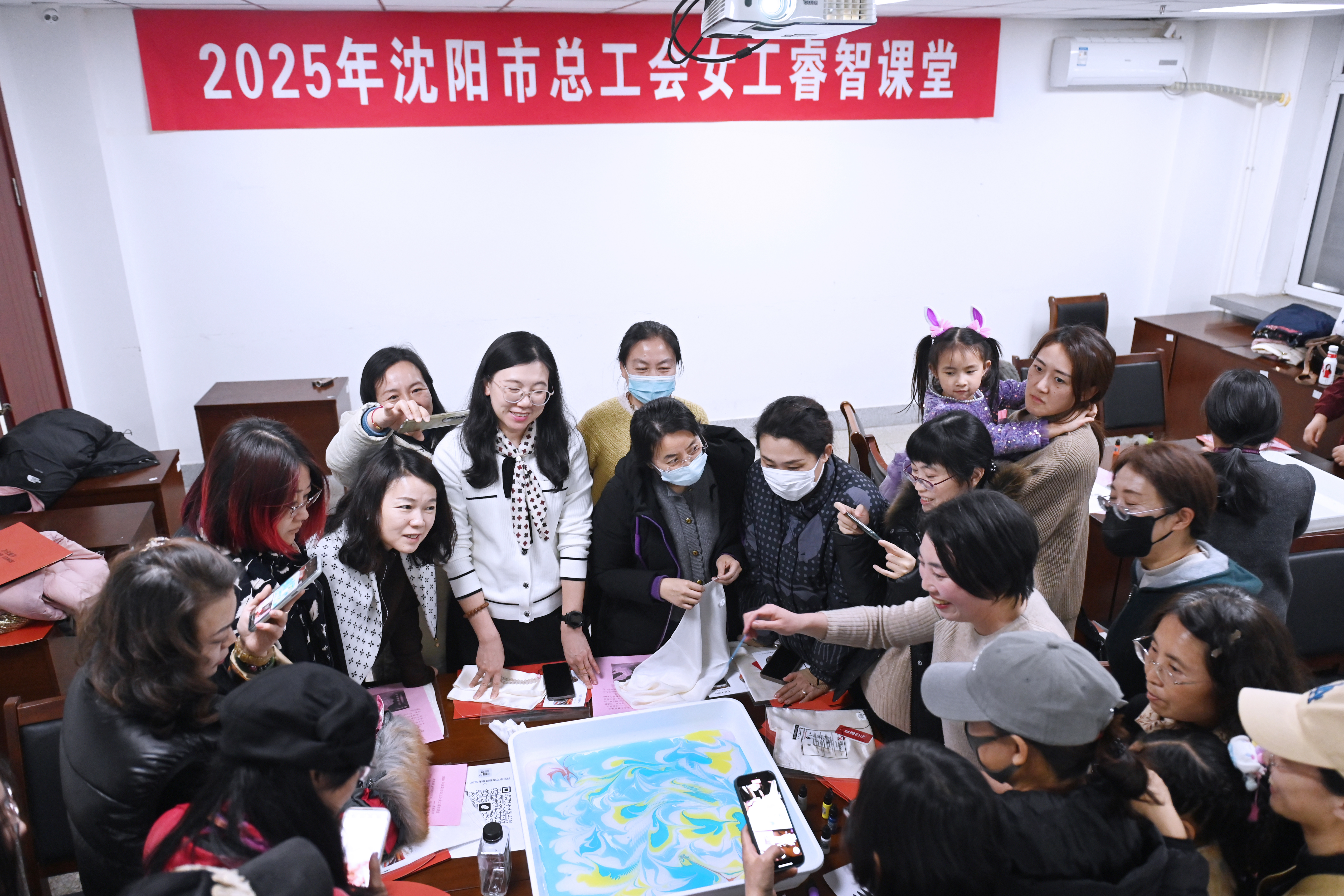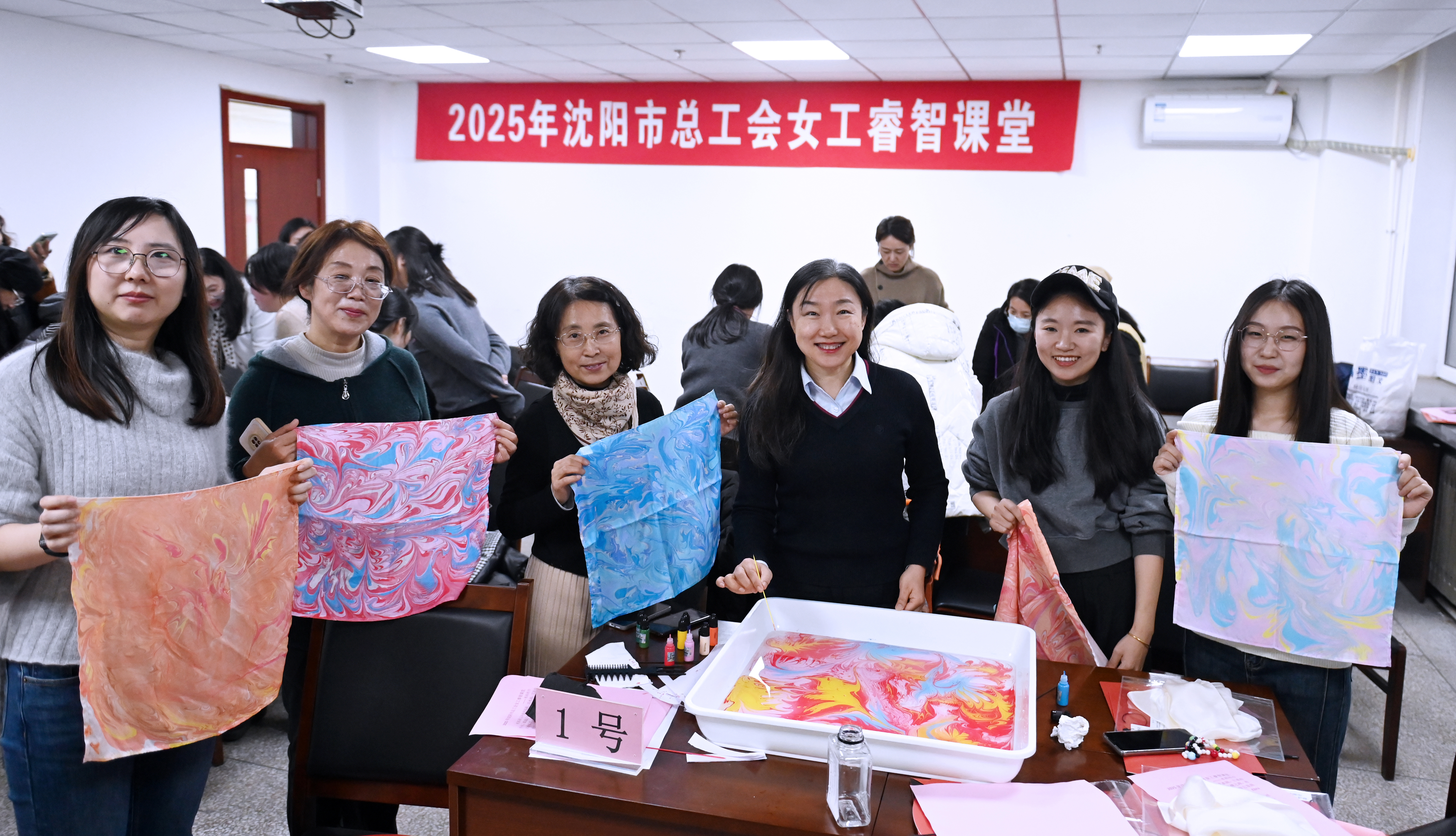 3月4日晚,在沈阳职工大学,一场别开生面的“手工制作水拓丝巾”活动让女职工们见识了“水写丹青”的千年“魔法”,同时也拉开了2025年沈阳市总工会“女工睿智课堂”的序幕。