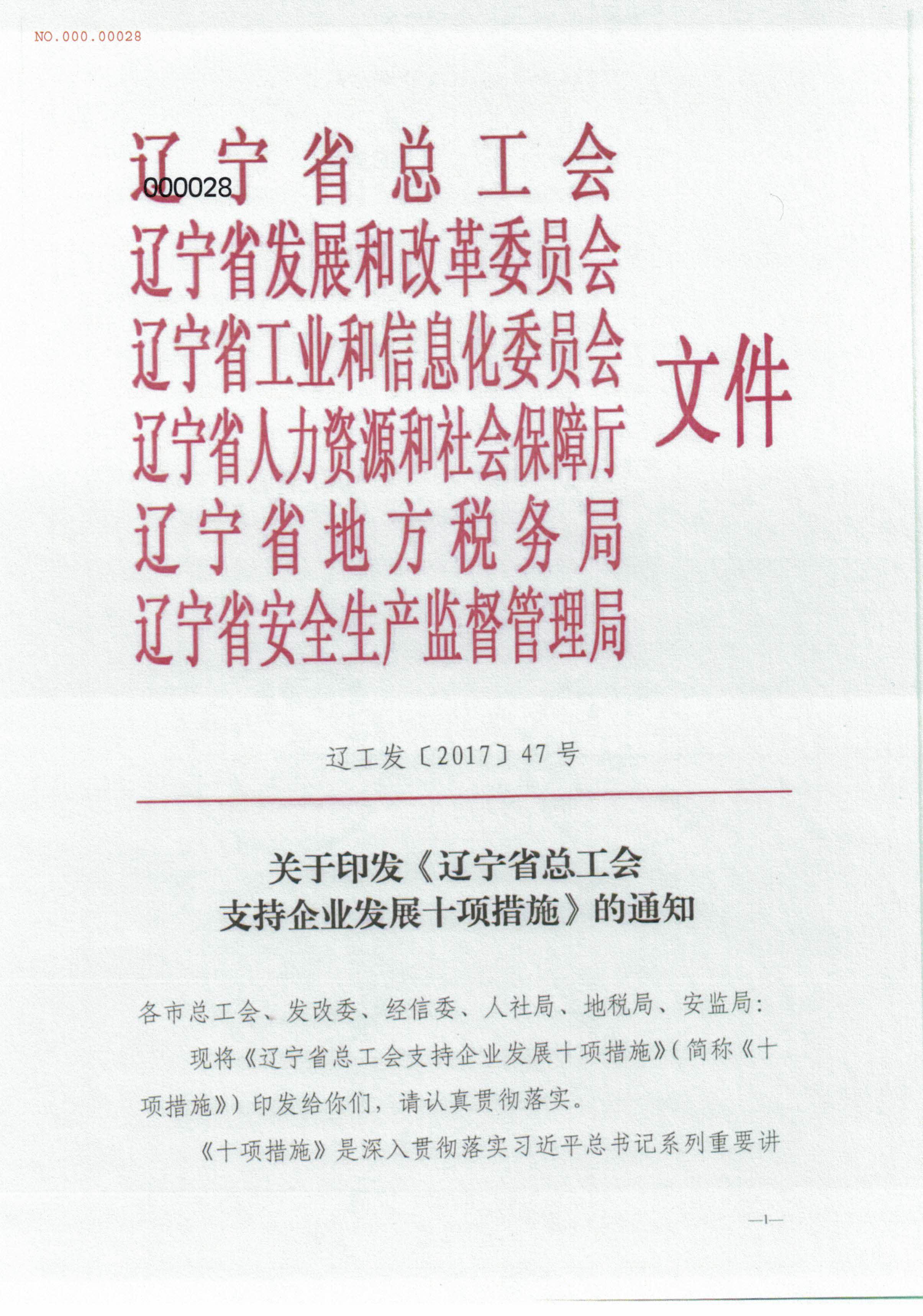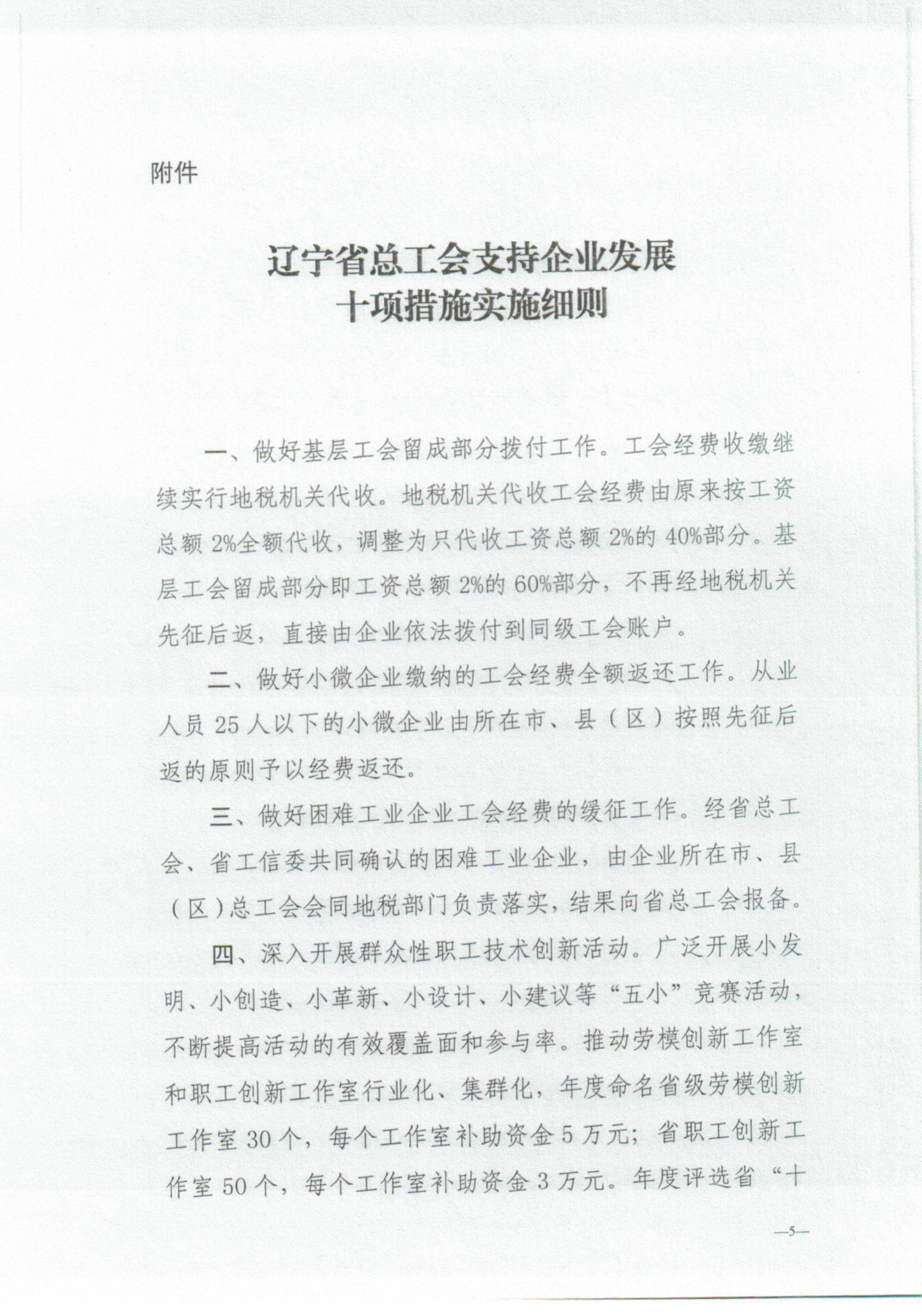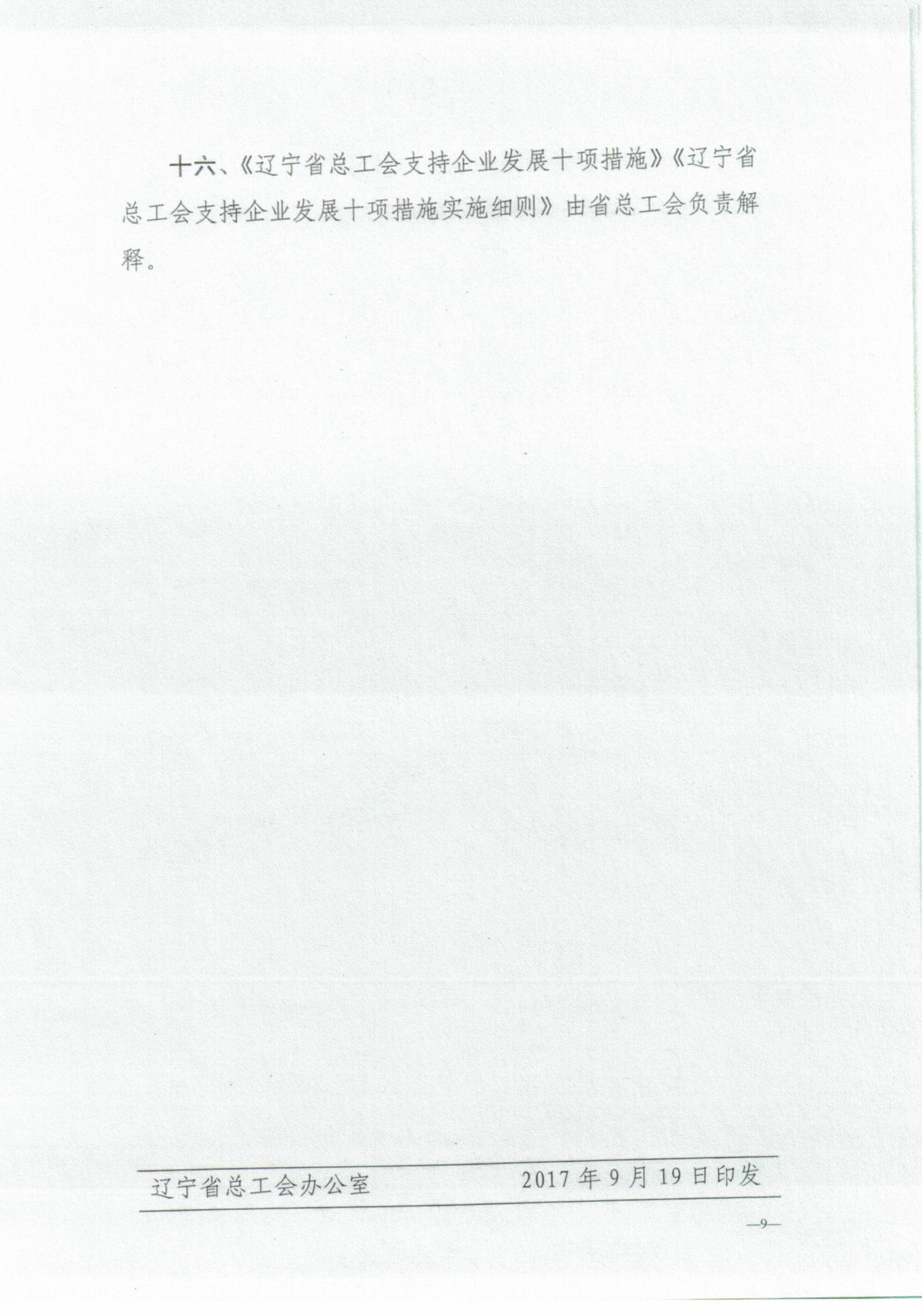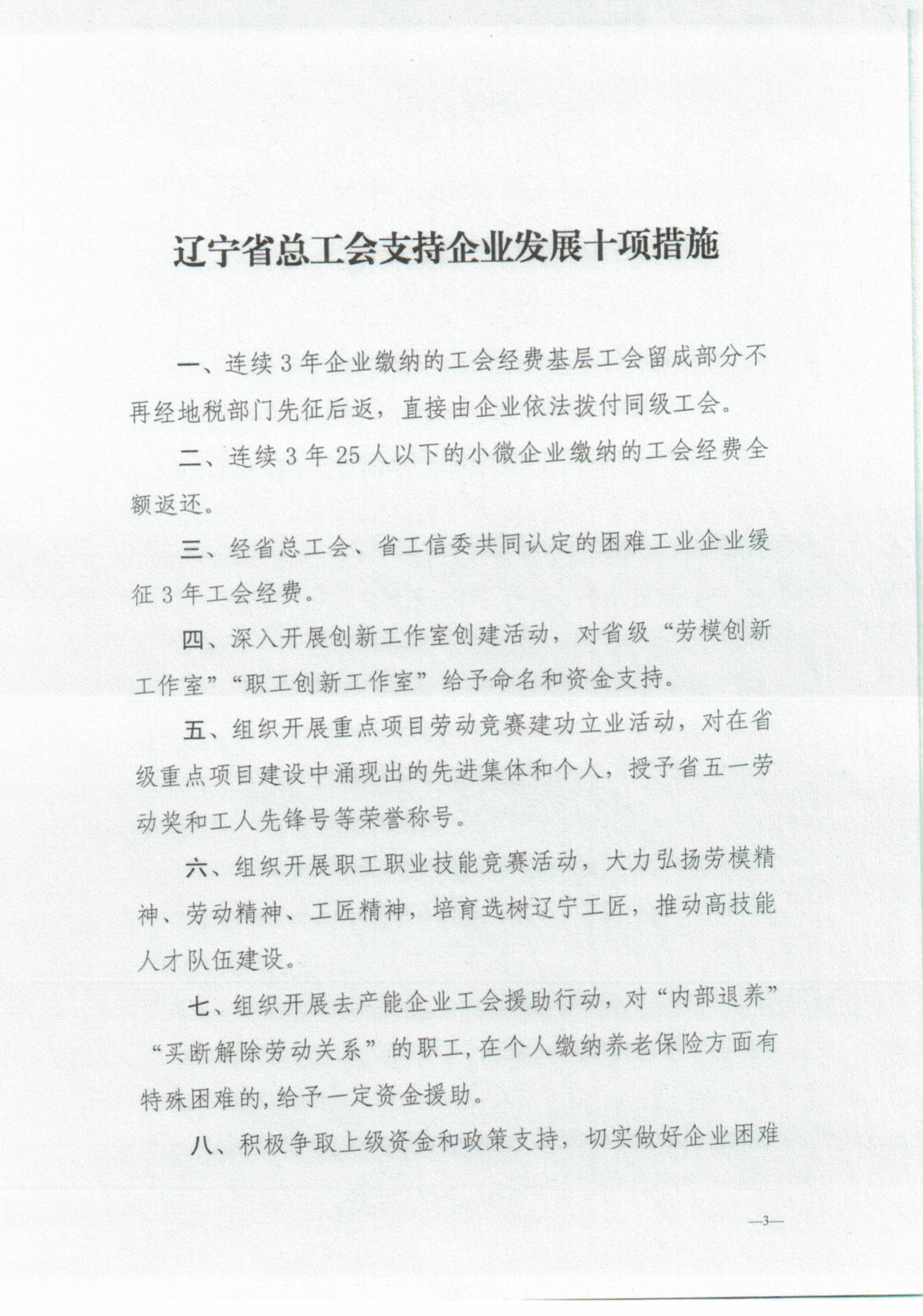关于印发《辽宁省总工会支持企业发展十项措施》的通知