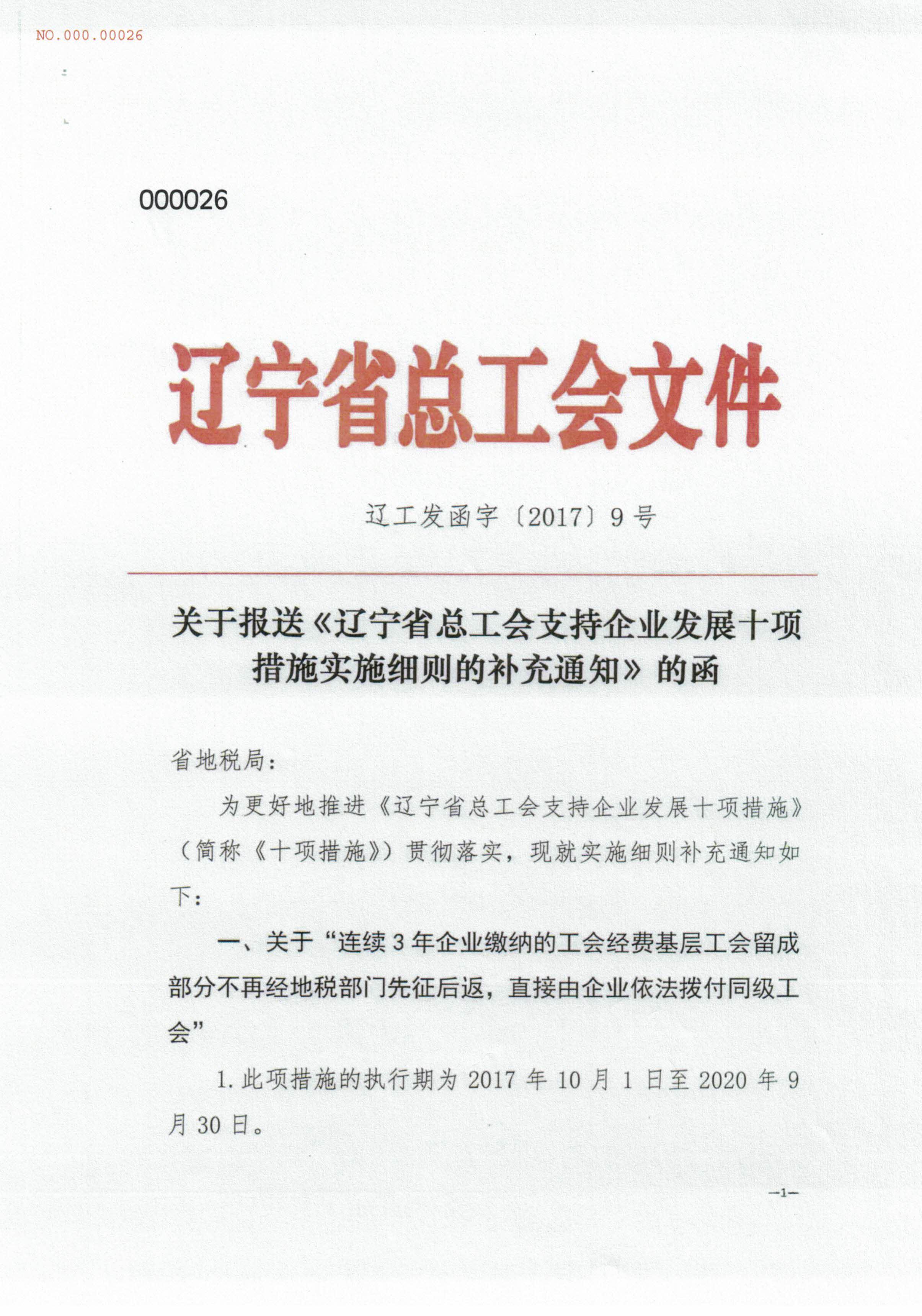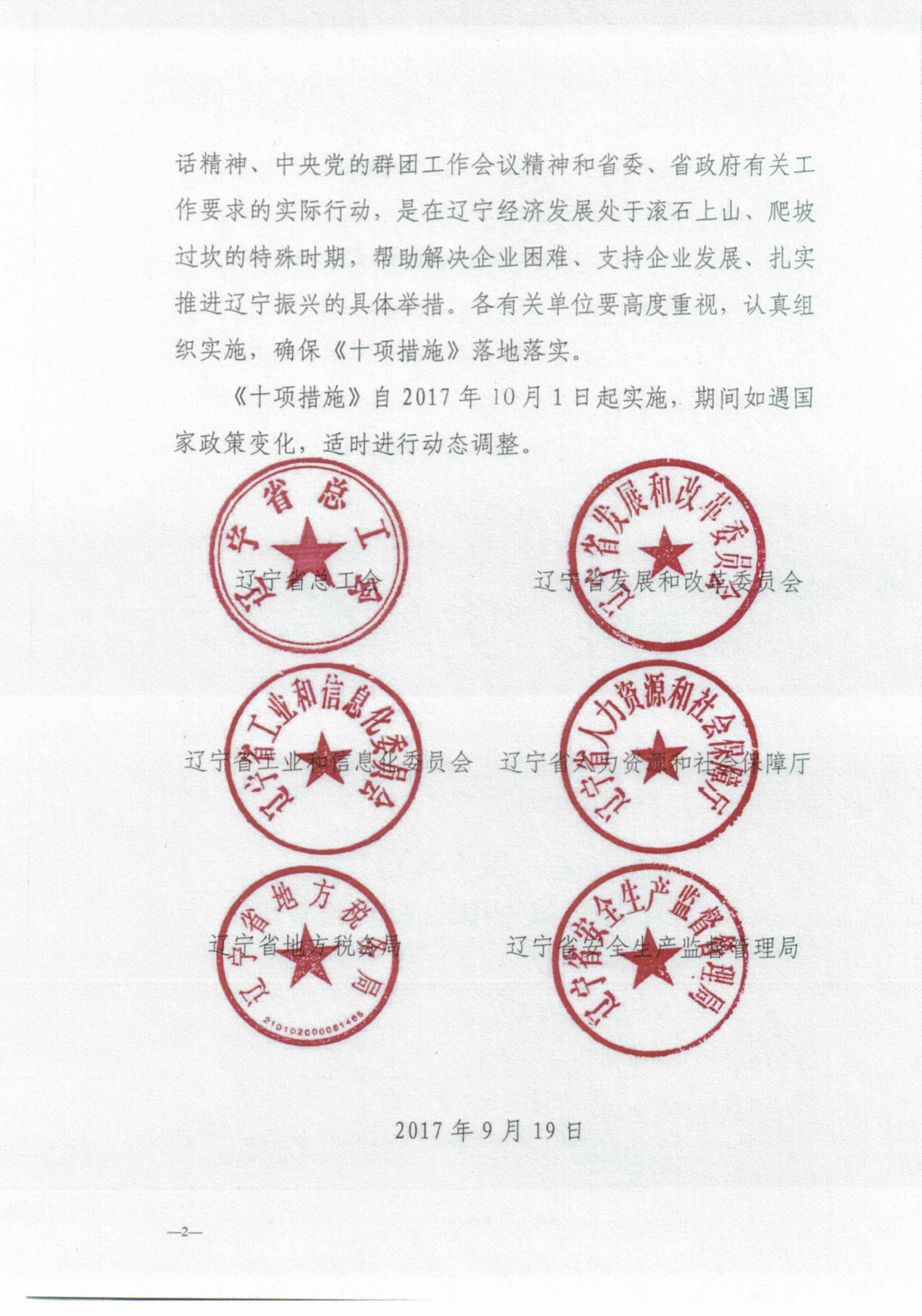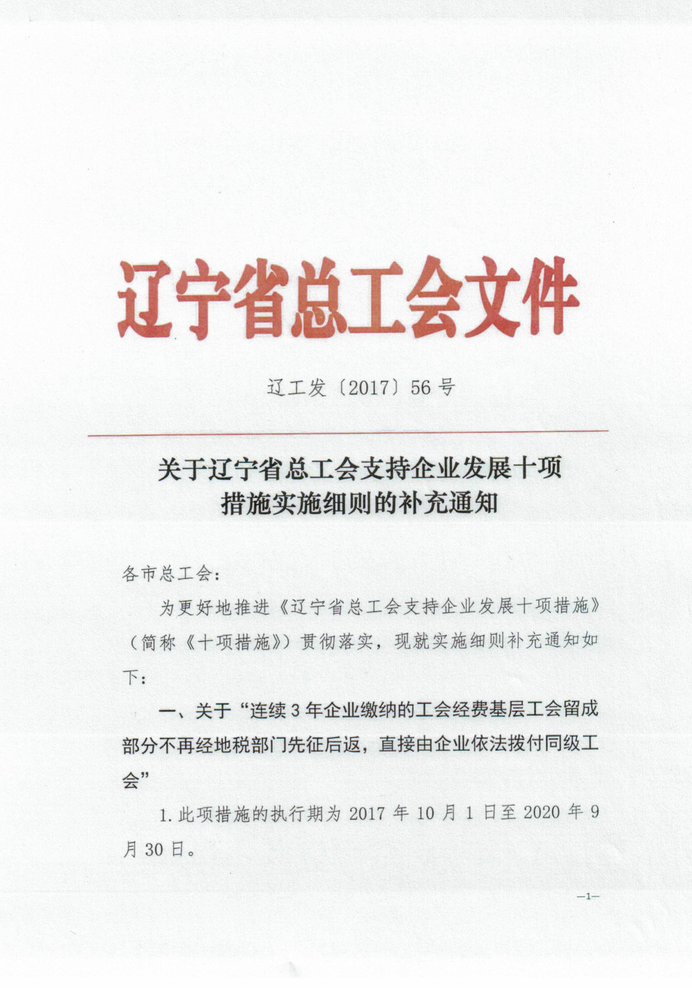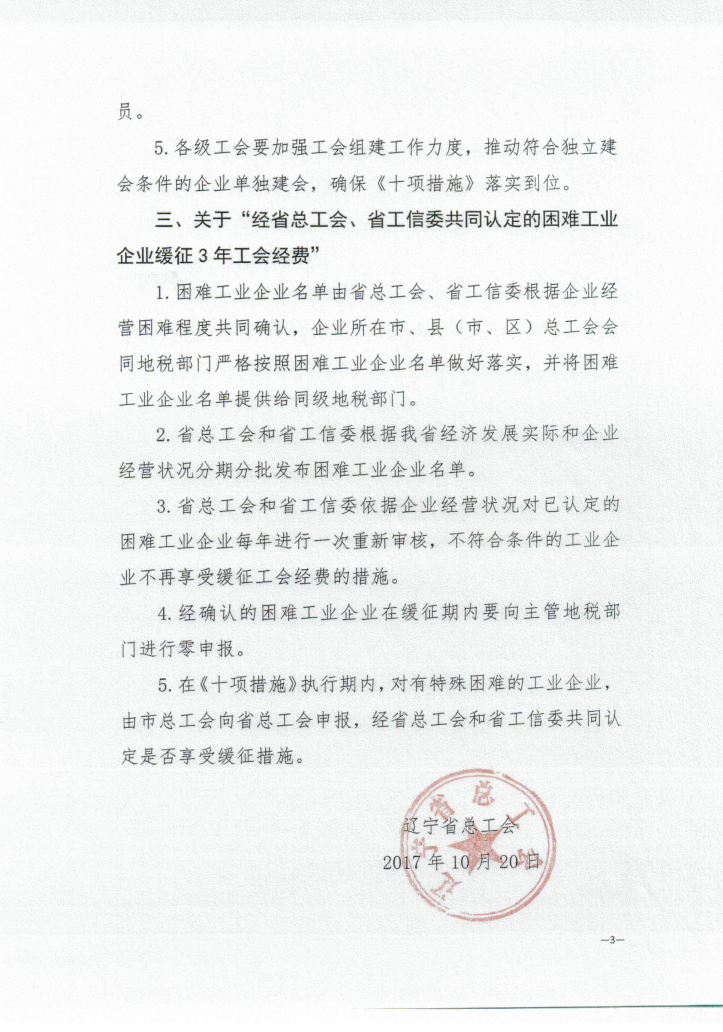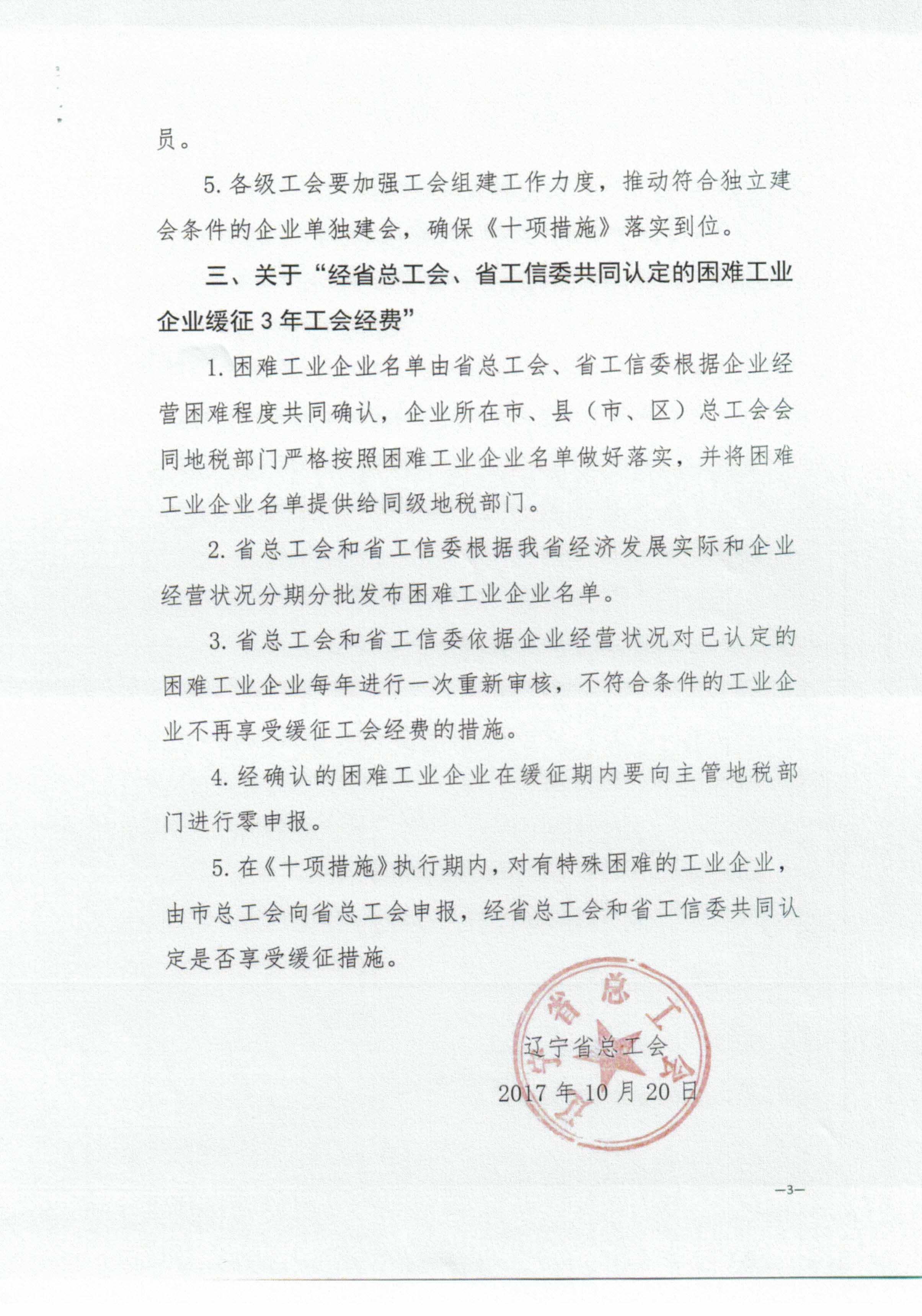关于印发《辽宁省总工会支持企业发展十项措施》的通知
