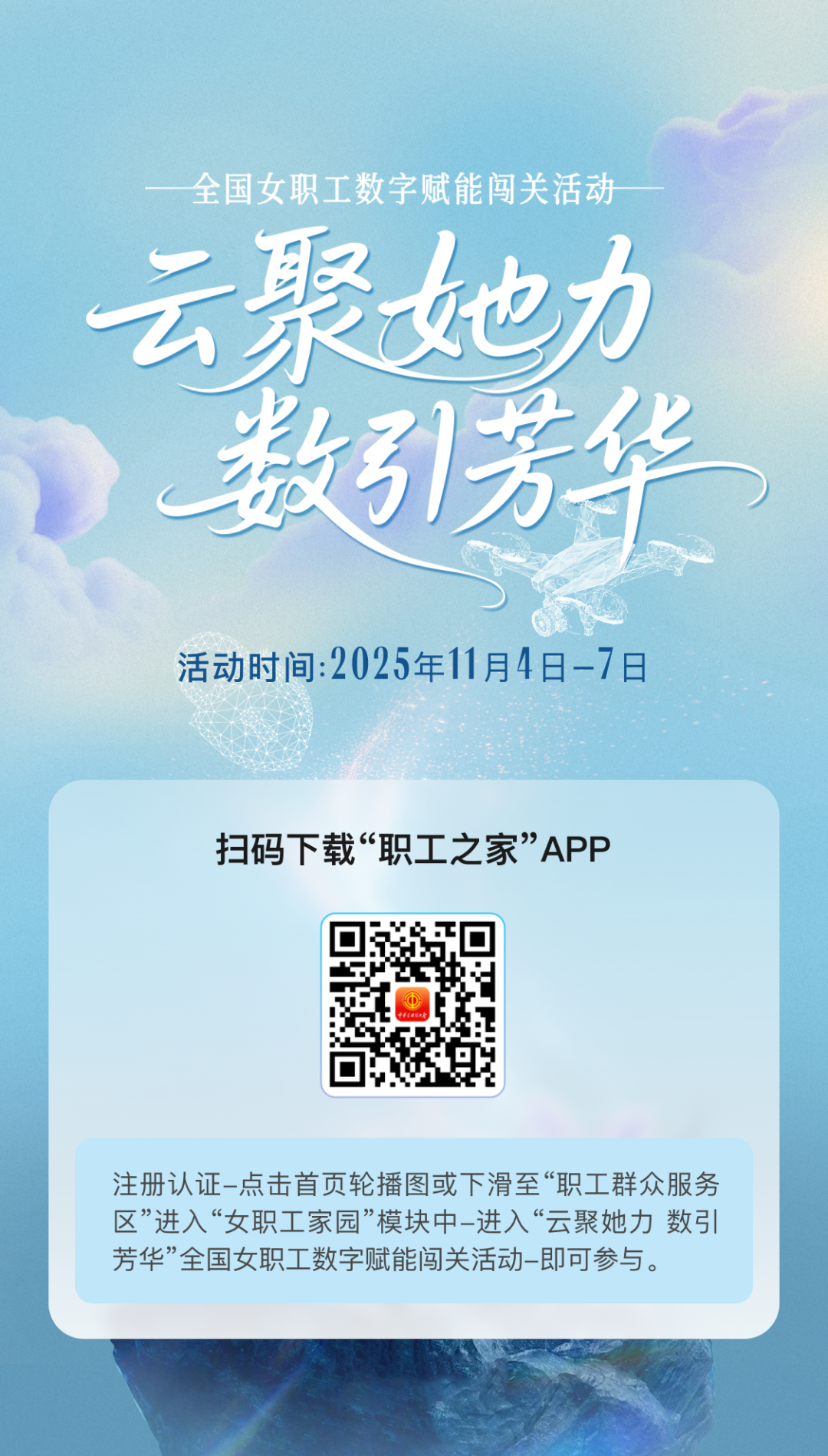 亲爱的家人朋友们,11月4日-7日,全总“职工之家”APP将开展“云聚她力 数引芳华”数字赋能闯关活动。这是一场专为女职工打造的精彩活动,不仅能提升数字技能,还能享受闯关乐趣。让我们一起积极转发,组织广大女职工踊跃参与,共同开启这场数字赋能之旅吧!