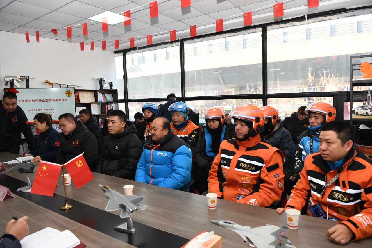 在沈河区车滴网约车工会驿站,慰问组向在场的网约车司机、外卖小哥等新就业形态劳动者送上关怀与慰问金,现场组织召开专题座谈会,20名新就业形态劳动者代表、平台及用工合作企业负责人、工会干部齐聚一堂、畅诉心声。座谈中,慰问组认真倾听大家在日常作业、权益保障等方面的所需所盼,明确表示将当好职工最坚实的后盾,主动与平台对接沟通管理制度完善、权益保障落地等实际问题,切实为大家纾困解难;同时贴心叮嘱外卖小哥,既要用心保障服务品质,更要时刻绷紧安全弦,做到安全配送、平安出行。