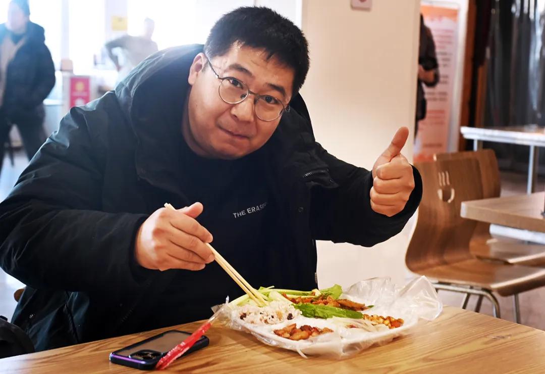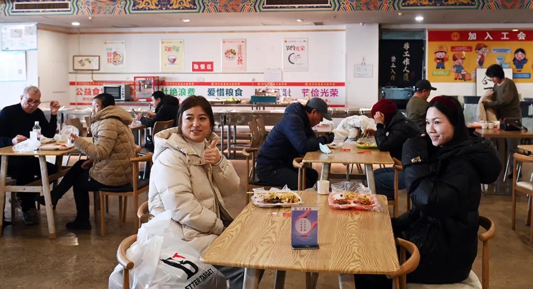 “我们想法很简单,就是不想让这些饭菜浪费。”食堂工作人员关斯元语气朴实:“以前我们会把当天没卖完的合格餐品,严格质检后打包成‘爱心盒饭’,放在楼下供劳动者自取。但现在天太冷了,大家拿回去还得热一下,既麻烦又耽误时间。所以我们干脆请他们直接上楼,吃口热乎的。没想到这个小小的尝试,竟然在网上火了。”