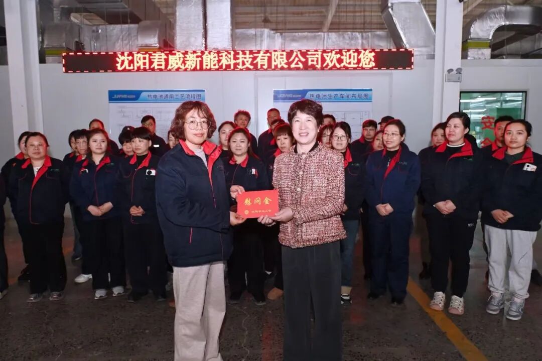 慰问组一边倾听介绍,一边仔细察看生产流程,对企业在复工复产中取得的成效给予高度肯定,也不忘叮嘱大家在抢抓生产进度的同时,注意劳逸结合、做好自身防护,牢牢守住安全生产底线。随后,慰问组为职工们送上慰问金,传递工会组织的温暖与关怀,鼓励大家在技术革新、提质增效中展现新作为,为企业发展和沈阳振兴贡献智慧力量。