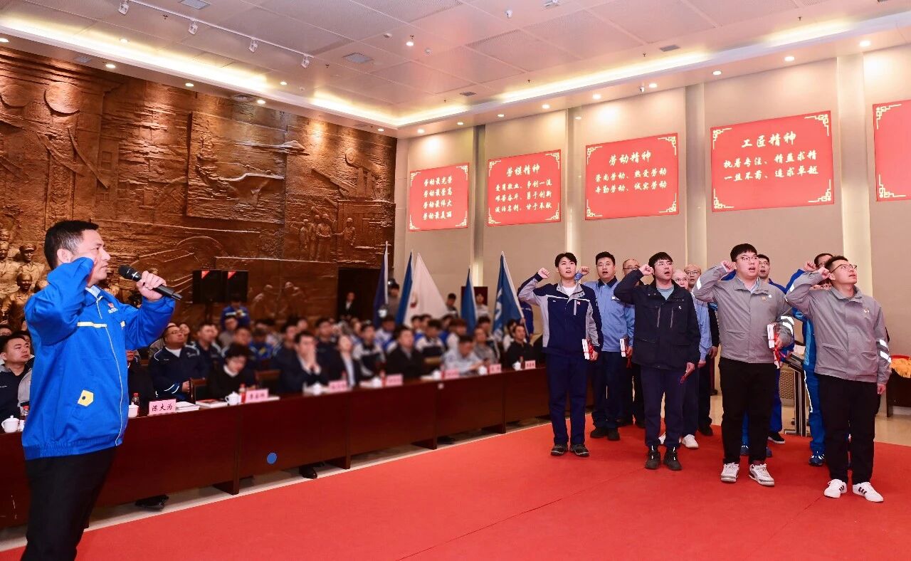全体参会人员在张腾蛟的领誓下宣读《新时代产业工人匠心誓言》,共同许下对匠心的承诺、对使命的担当。铿锵誓言在劳模馆内回荡,合唱《咱们工人有力量》唱出了工人阶级的豪迈气概。