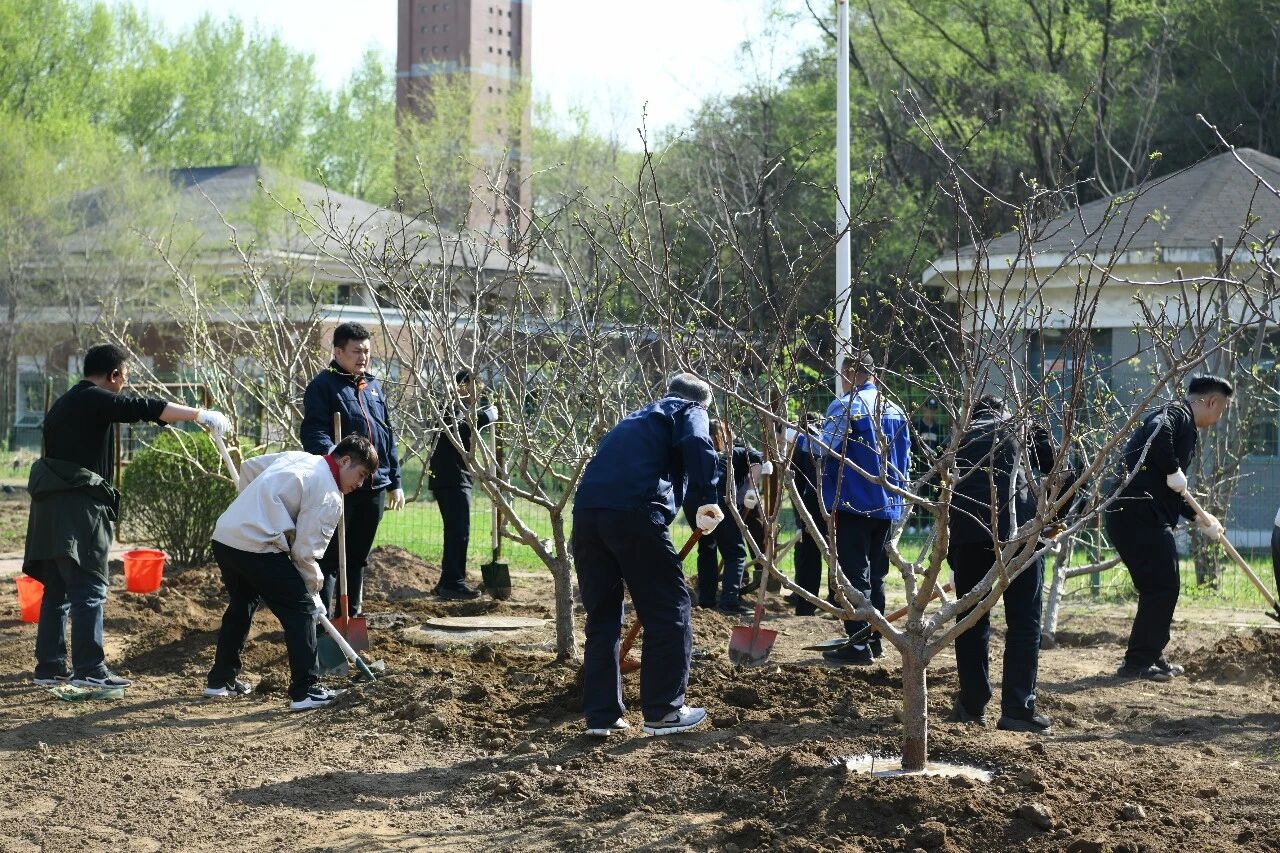 本次活动以“植树护绿美环境志愿服务践初心”为主题,活动地点设在沈阳市职工疗养院后山。全体参与人员抵达现场后统一整队开始劳作。植树现场一派热火朝天的劳动景象。全体人员分工协作、齐心协力,严格按照栽植规范挥锹铲土、培土扶苗、盖土浇灌,认真完成每一道工序,用实际行动守护生态家园。植树环节结束后,大家共同前往疗养院后山区域开展环境清洁志愿服务,捡拾枯枝、清理杂物,以务实举措维护区域环境整洁。