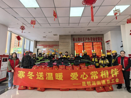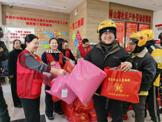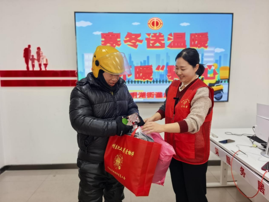 近日,沈阳普降大雪,气温骤降,凛冽寒风给新业态群体的出行和工作带来诸多不便。为切实保障骑手等新就业形态劳动者的出行安全与身体健康,在铁西区昆明湖街道总工会的统筹安排下,雨山湖社区工会迅速行动,精心组织开展专项送温暖活动,为奔波在风雪中的骑手们送去冬日里的关怀与温暖。